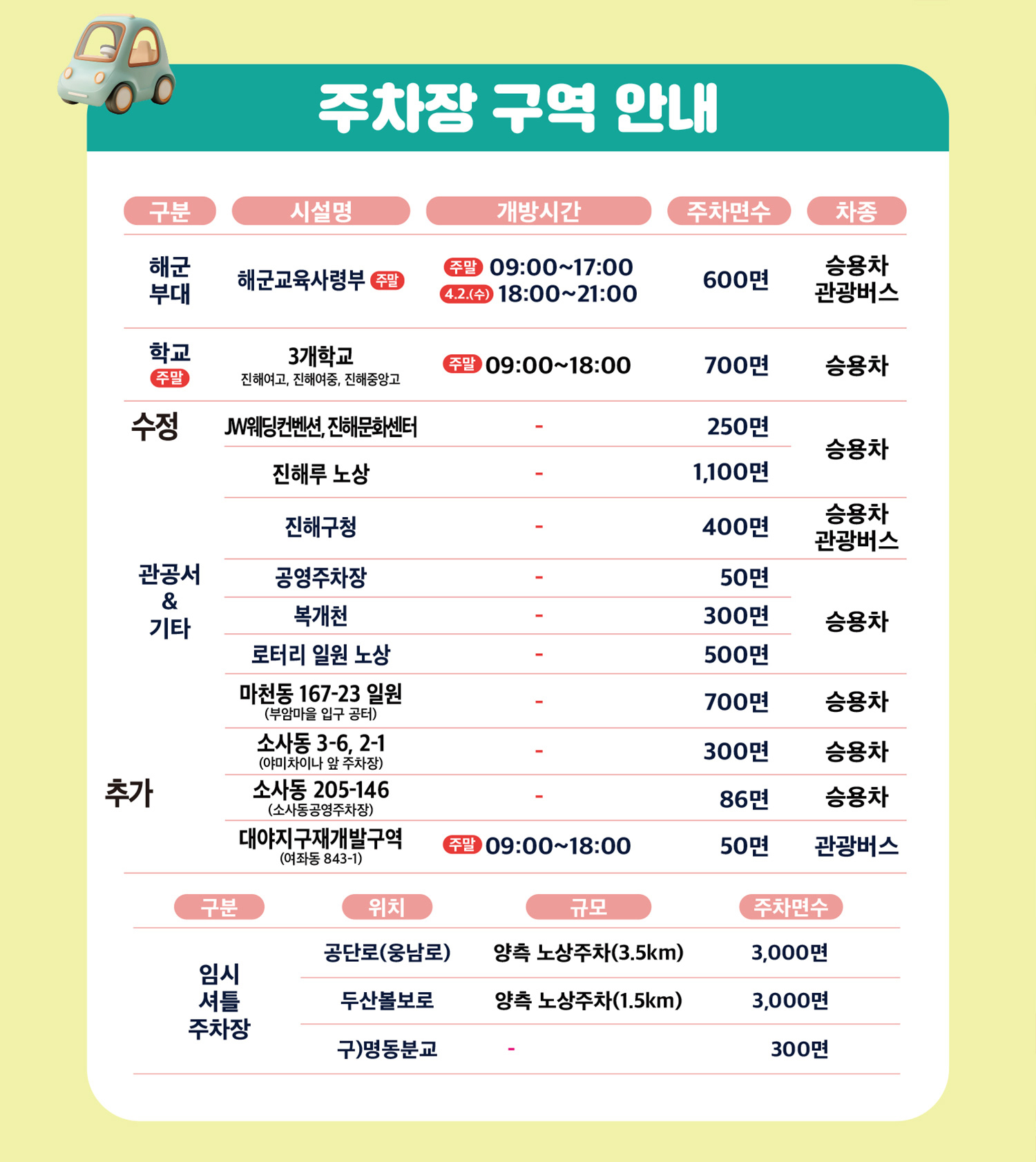 진해 군항제에 가실 분들은 주차장 정보 꼭 체크하시고, 벚꽃과 함께 인생 사진 남기세요! 😊